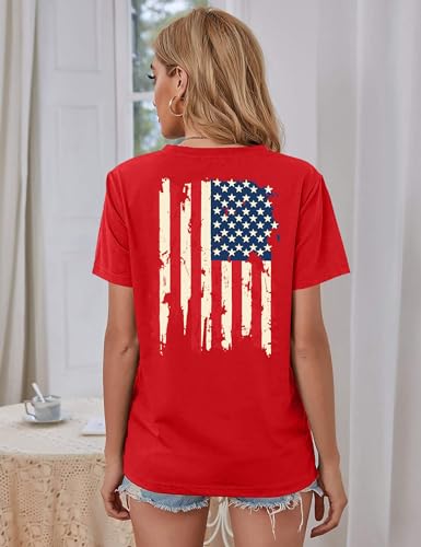 American Flag Shirt Women: Patriotic Shirt USA Flag Stars Stripes Print Short Sleeve T-Shirt 4th of July Tee Tops 4