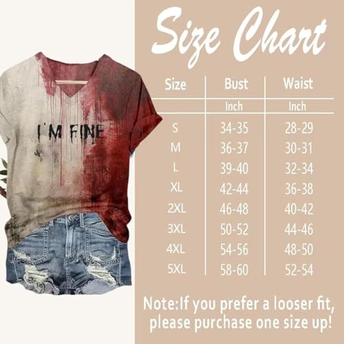 More information about I'm Fine Bloody Shirt Women Funny Halloween Blood Horror Tshirt Clothes Gift Blood Splatter Top for Women