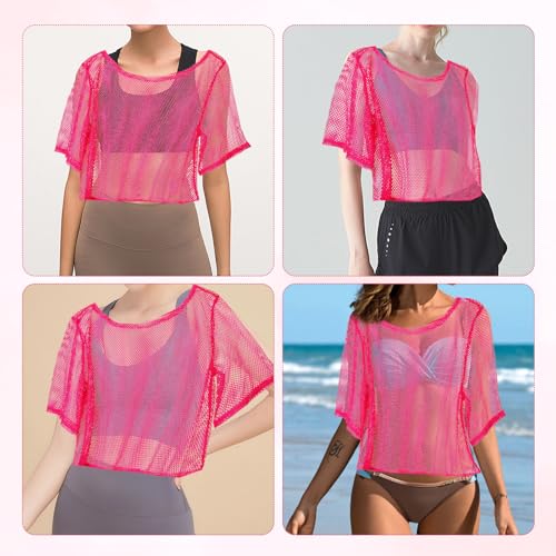 80s90s Neon Mesh Top,Neon Fishnet Top,Sexy Off Shoulder T-Shirt,Suitable for Female Masquerade,Party (Rose Red) 7