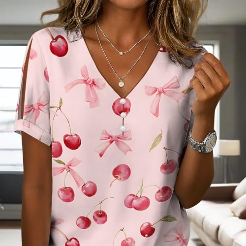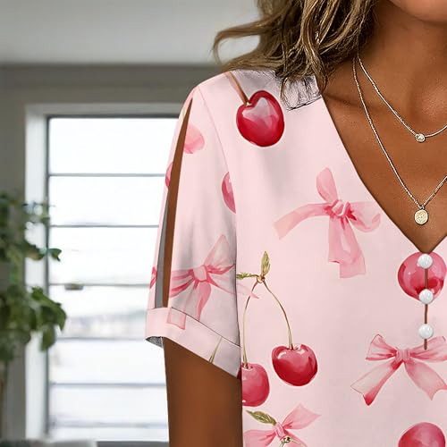 2025 Summer Floral Plus Size Casual V Neck Tops for Women Trendy Boho Cut Out Short Sleeve Print T-Shirt 7