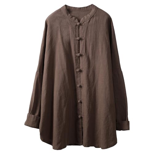 More information about Women's Cotton Linen Shirt Button Jacket Vintage Long Sleeve Blouses Coat Top Spring AutumnCasual Wear
