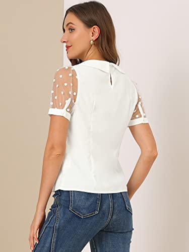 Allegra K Women's Peter Pan Collar Shirt Tops Short Sleeve 1950s Vintage Polka Dots Mesh Sleeve Blouse 1