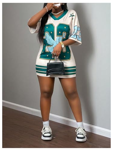 Women's Plus Size Jersey Shirt Number Graphic V Neck Half Sleeve Oversized Tee Shirt Streetwear 4