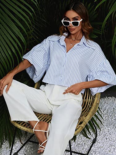 More information about Verdusa Women's Striped Puff Sleeve Crop Blouse Tops Drop Shoulder Button Up Shirts Concert Festival Outfits