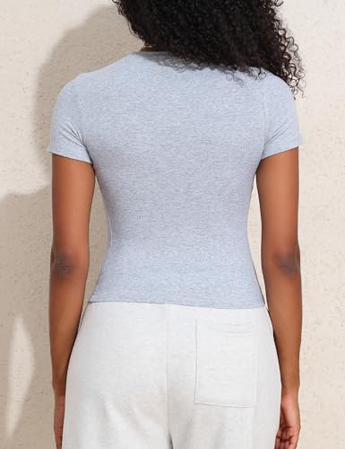 kayamiya Women's Basic Short Sleeve Cotton Shirts Slim Fit Crewneck Summer Trendy Y2k Baby Tee Crop Tops 6