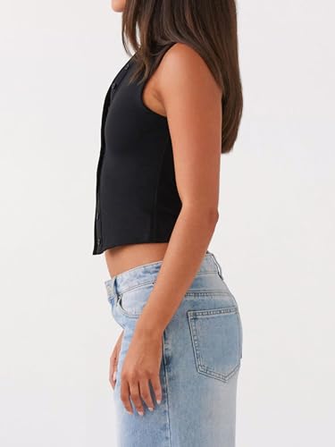 Springcmy Womens Button Down Tank Top Sleeveless Ribbed Fitted Vest Casual Trendy Y2K Going Out Crop Knit Vest Top Streetwear 6