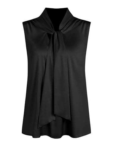 • Features: Causal satin tank blouse features with bow tie front knot style, V-neck and sleeveless design accentuates the neckline, loose fit covers the tummy area easily, ensuring a comfortable and free fit