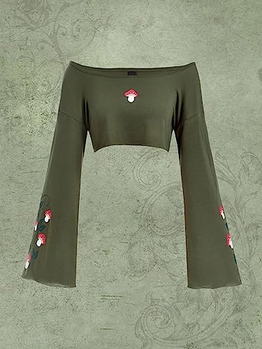 HOT ! SOLY HUX Women's Off Shoulder Bell Long Sleeve Crop Top Mushroom Print Tee T Shirt