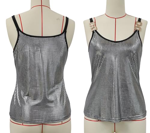 Womens Metallic Top Sparkle Cami Party Club Glitter Tanks Tops 6
