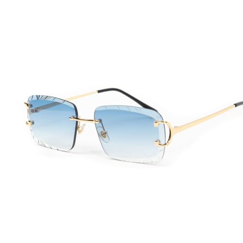 • RIMLESS BLUE TINT SUNGLASSES: The rimless frame and delicate gold metal temples makes these sunglasses look of very chic. stylish diamond cutting design, it's super stylish,and match for any look,makes you the most glamourous of the crowd.