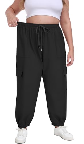 OLRIK Plus Size Cargo Pants for Women Adjustable Drawstring Joggers Casual Loose Baggy Trousers with Pockets 4