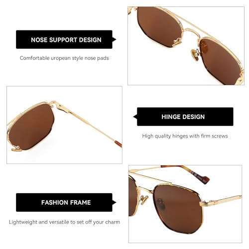 • Double Bridge Design: Vintage hexagonal aviator design provides a unique and classic look for modern men and women. Double bridge flat top design make you look more stylish. Designed durable metal frames feature glossy acetate tips, which is resistant to sweat corrosion and color fading.
