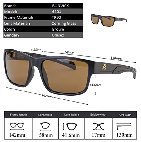 • Corning Glass Lenses: Corning is a globally renowned glass material manufacturer. All BUNVICK sunglasses uses Corning glass that provides superior and stable optical performance, with clarity surpassing any other lens material.