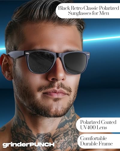 HOT ! grinderPUNCH Polarized Super Dark Sunglasses for Men and Women Trendy Retro Sun Glasses for Driving UV Protection