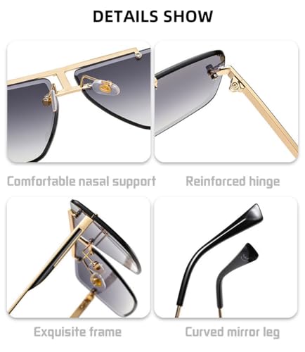 Junsika Oversized Square Rimless Sunglasses for Men Fashion Retro Designer Shades Sunglasses 7