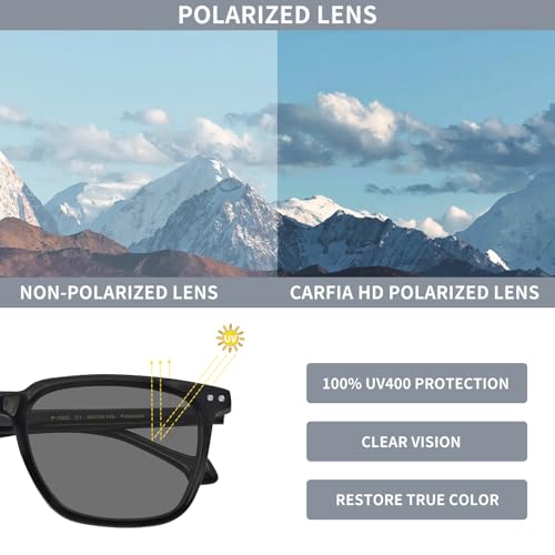 • 【HD Sunglasses Polarized UV Protection】 Our sunglasses come with a remarkable polarized feature that efficiently gets rid of reflected and scattered light. This not only minimizes glare but also brings back the true hues of objects. As a result, whether you're engaged in activities like driving, fishing, cycling, going on a hike, or playing golf outdoors, you can relish a sharp and unobstructed view. Additionally, our eyewear offers dependable UV400 protection.