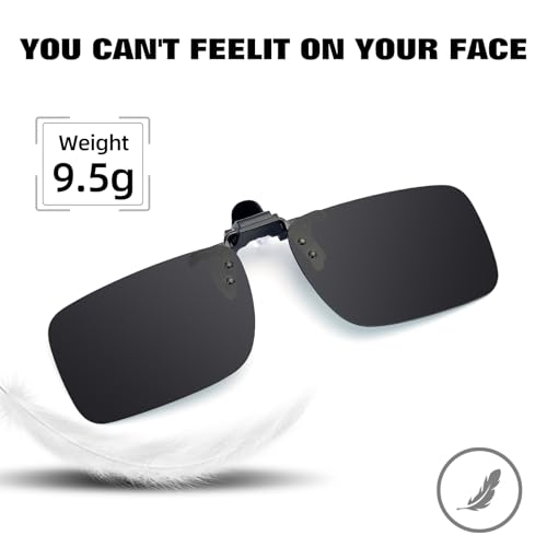 • Ultra Lightweight Flip Up Sunglasses: The polarized clip on sunglasses is only 9.5g, you can hardly feel it on your nose
