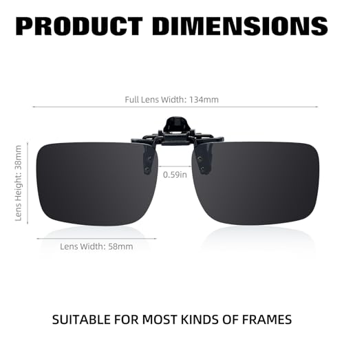 • Clip On Sunglasses Over Prescription Glasses: Just clip on your prescription glasses to use. Flip up and down lens design suitable for more occasions
