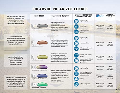• PolarDynamiX 1.4mm (glass-like) Premium polarized lenses block harmful UV light and annoying glare, while providing natural color definition and enhanced visual acuity, reducing eyestrain