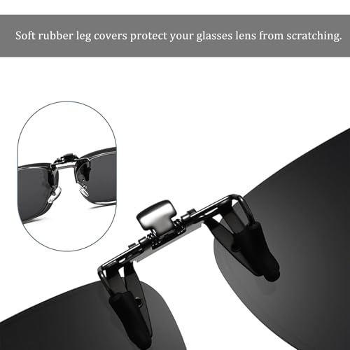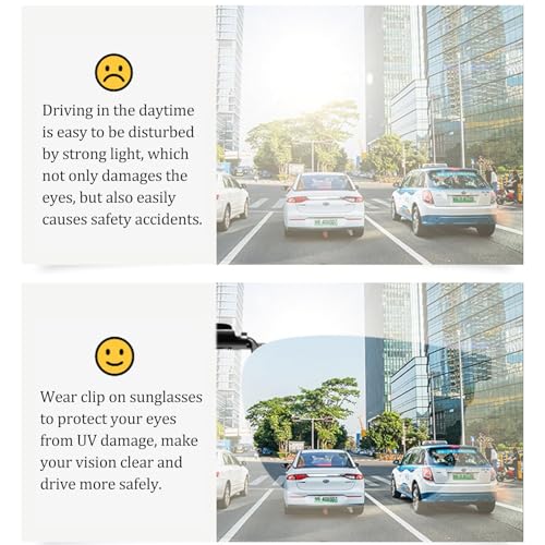 • Fits Most Frames & Easy Application - Just clip on your glasses! You can flip it up when going to indoors and flip it down when you go out, giving you full protections in the sunlight. Saving much trouble for those who have to wear prescription glasses or reading glasses.