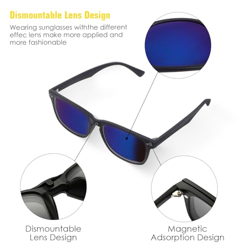 Tissting Magnetic Clip on Sunglasses with 5 Interchangeable Lenses - Retro Rectangular Eyeglasses for Men and Women, Night Driving Glasses with Stylish Frame, Lightweight and Practical Design 5