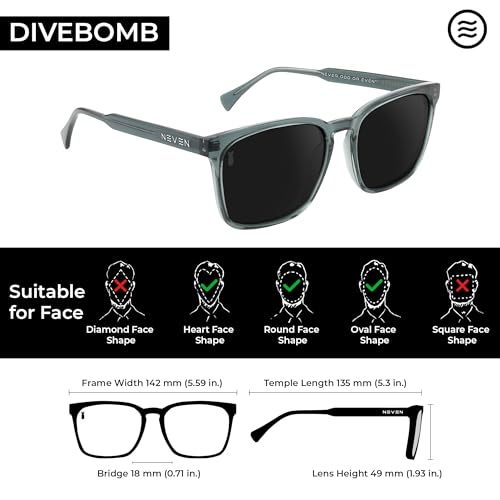 HOT ! NEVEN Divebomb Men's Polarized Sunglasses - Classic, Rectangular Concert Sunglasses - Fashion Accessories for Road Trips.