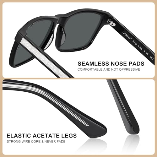• Acetate Black Frame Men's Sunglasses - Our black sunnies are made of Italy handpolished acetate material. Compared with cheap peeling plastic frame whose color are sprayed on, our glossy frame retains color brightness impeccably over time because its hue is natively embedded in material. So avoid from fading, peeling, yellowing or other discoloration. Hypoallergenic aceteate also resistant to sweat corrosion, ensure skin health during outdoor activities.