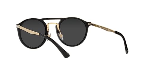 • FRAME FEATURES: PO3264S feature a round, black/gold frame with an acetate top bar and metal low bridge, and black polarized lenses.