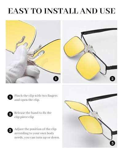 LUFF Night Driving Clip on Glasses for Men Women, Anti-Glare Polarised Flip up HD Vision UV400 Suitable for Night Driving 5