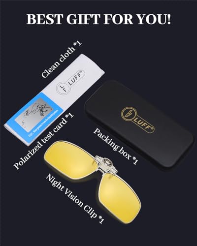 HOT ! LUFF Night Driving Clip on Glasses for Men Women, Anti-Glare Polarised Flip up HD Vision UV400 Suitable for Night Driving