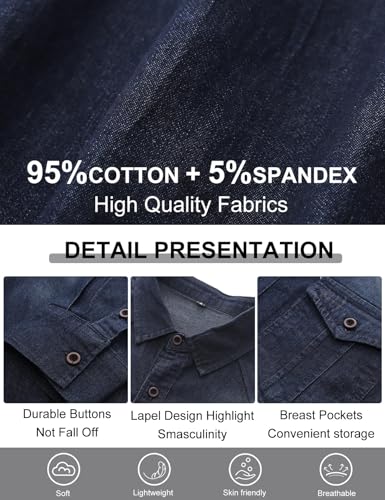 • Material: Men's long sleeve shirt,denim shirt is made of cotton fabric. Lightweight, breathable, wear resistant,soft to the touch, non-shrinking, non-fading