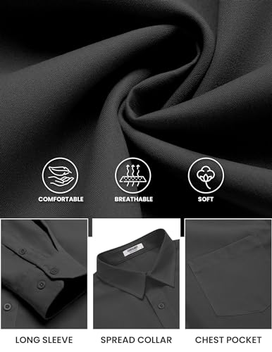 • Design: Featuring spread collar and a convenient chest front pocket, this mens long sleeve button down shirt is a testament to timeless style. The button-up front and adjustable cuffs allow for a personalized fit, while the tailored silhouette ensures a flattering look.