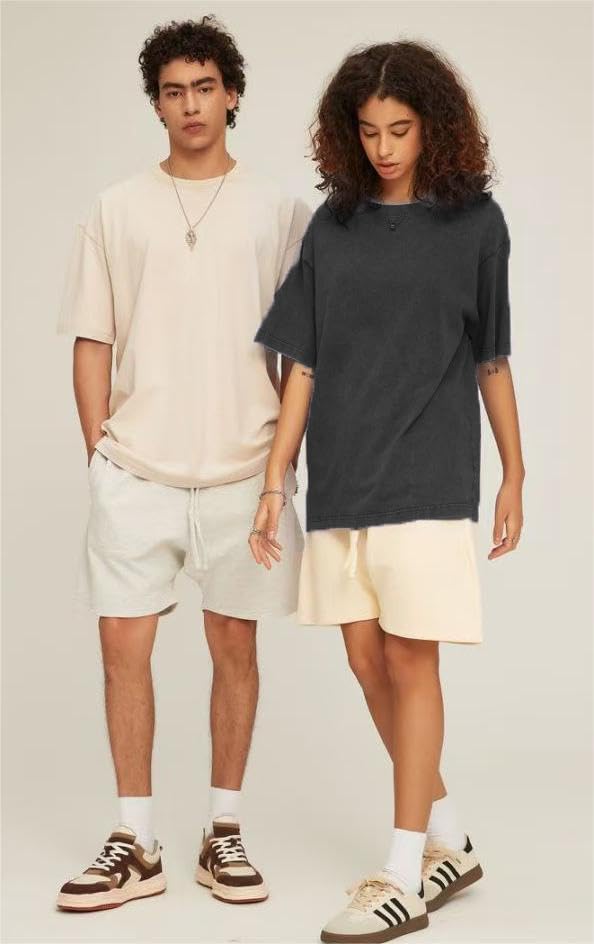 • 【Design】: Streetwear T-shirts, solid color tees, oversized T-shirts, drop shoulder T-shirts, round neck, summer vintage top for men, loose boyfriend style shirts, short sleeve pullovers, causal loose fitting, Unisex t-shirts are perfect as a couple's T-shirt.