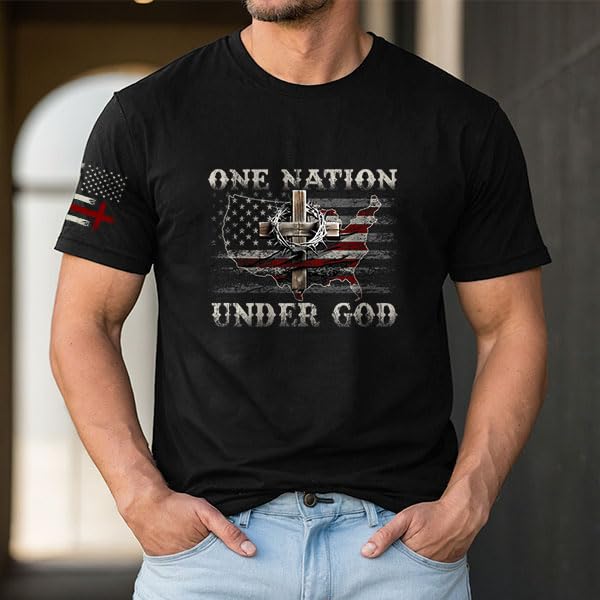 One Nation Under God T Shirt, Christian Shirts for Men, Cross Shirt, Mens Christian T Shirts, Religious Tee 1
