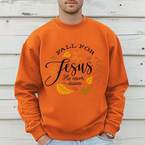SUWBMHWE Fall for Jesus He Never Leaves Sweatshirts for Men Christian Jesus Sweatshirt Fashion Casual Crewneck Pullover 5