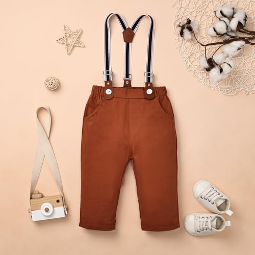 • ★PACKAGE INCLUDED: 1 x baby boy shirt top + long sleeves pants +1 x suspender + 1 x bow tie, Recommended hand wash for the first time.
