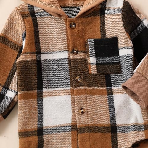 • 【Classic Features】: Flannel plaid design,with pockets, long sleeves, button and pull on closure, baby hoodies+sweatpants
