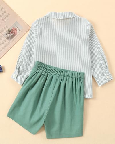 Twoflower Toddler baby boys' clothing sets boy outfit Spring Long sleeve Button Down Shirts with peter pan collar 2