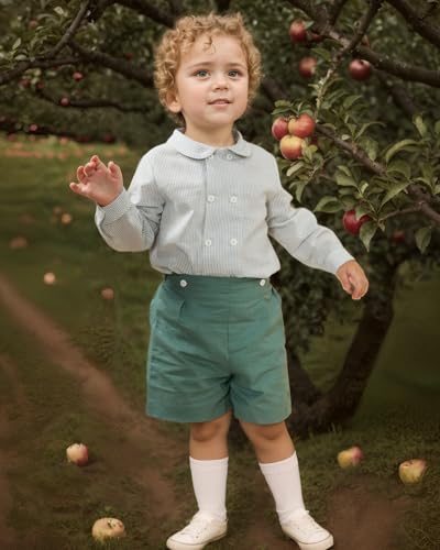 • 【Retro fabrics】The fabric of shirt is high-grade cotton .It is made of 100% cotton, which is more soft, breathable, light, stylish and smooth for your daily wear or formal party wear.The Pants is made of Cotton and linen. It is a retro fabric with a color that is very suitable for children. The lining als is 100%Cotton soft and comfortable, breathable and lightweight, skin-friendly, suitable for baby Toddler and kids
