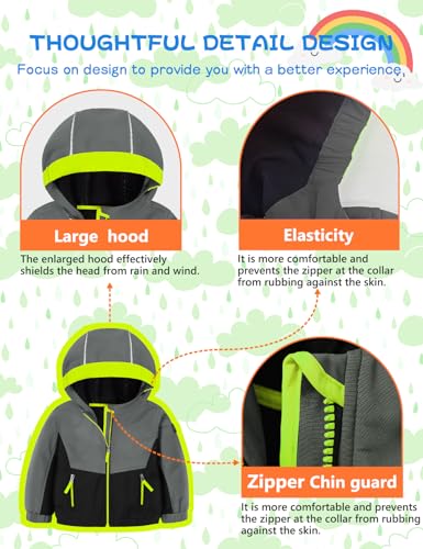 • 【Windproof & Water-repellent Jacket】:Built with high-density material rated Level 4 waterproof and a water resistance rating over 5000mm,this toddler jacket offers reliable protection against wind and rain.It helps keep your little one dry on rainy days and even in light snow-perfect for unpredictable spring,fall,or winter days.