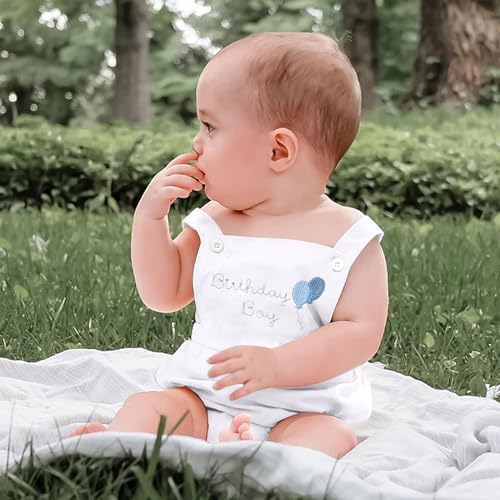 GRNSHTS Newborn Baby Boy 1st Birthday Outfit Summer Romper Sleeveless Jumpsuit Backless Overalls Outfits Cake Smash Party 6