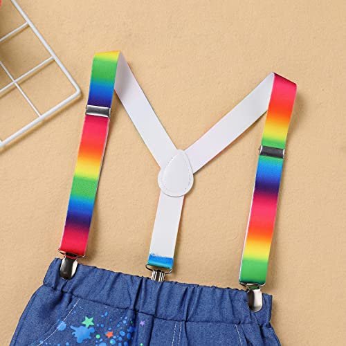 IMEKIS Toddler Baby Boys Melon Birthday Outfit Romper T-shirt + Jeans Shorts + Suspenders Rainbow Cake Smash Photo Shoot 1-5T 4