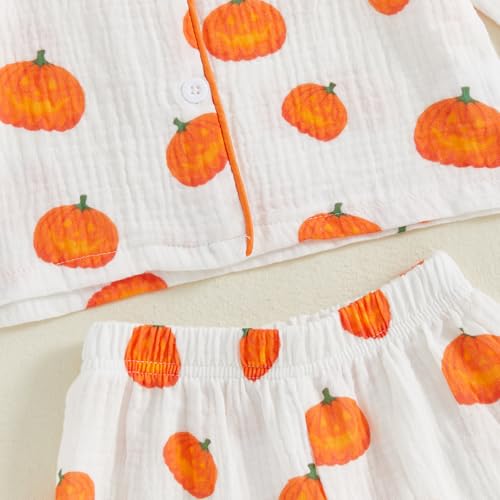 Kids Baby Boy Girl Halloween Pajamas Set Cotton Linen Button Down Pumpkin Long Sleeve Shirts Tops and Pants Pj Sets 6