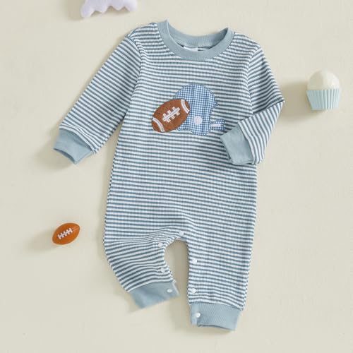 • Package Include: 1* Baby boy girl football outfit newborn football embroidered stripe waffle knit long sleeve romper jumpsuit one piece bodysuit infant fall winter outfit. football baby boy clothes, football baby girl clothes, football baby boy outfit, football baby girl outfit, baby boy clothes baseball theme, baby girl baseball theme clothes, football romper for baby boy, football romper for baby girl, super adorable, ideal present for your little baby, he/she will get tons of compliments