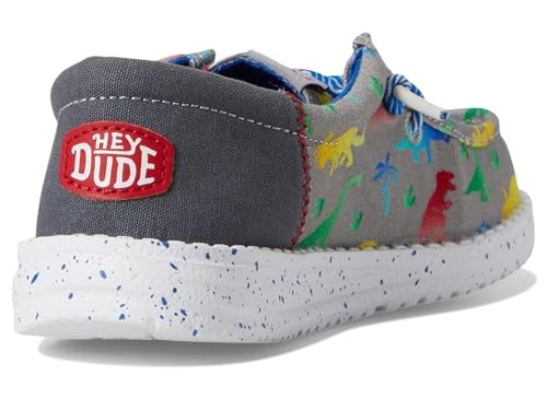• Great for travel & on the go, the Hey Dude Kids Wally Funk Dinomite shoes are perfect to pair with your kid's different outfits and styles. They are made of a canvas upper and breathable cotton lining. The removable memory foam cushioned insole provi