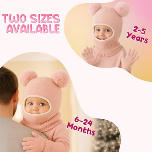 • 【2-in-1 Design】This baby hat and scarf 2-in-1 design makes it easy for your child to wear. The integrated design of the hat and scarf can completely cover the child's head, face, ears and neck, providing ultimate warmth in cold winter outdoor. The cute double pompoms design can also make your child stand out at party or outdoor group activities.