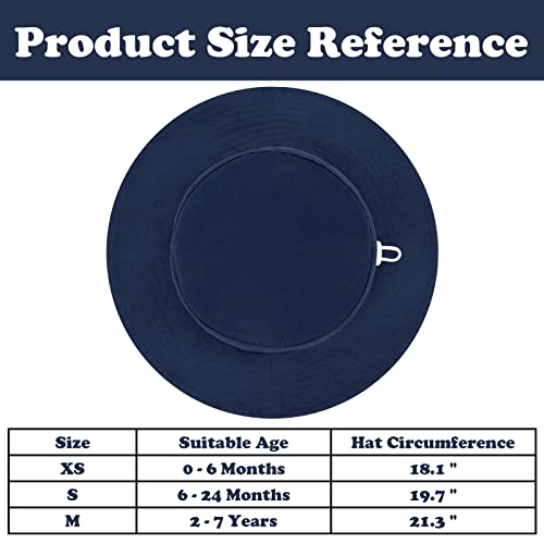 • SIZE INFORMATION: Our infant sun hat have 3 sizes. Size XS is recommended for 0-6 months, head circumference: 18.1"=(46cm); Size S is recommended for 6-24 months, head circumference: 19.7"=(50cm); Size M is recommended for 2-7 Years, head circumference: 21.3"=(54cm).