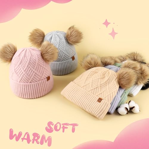 Kids Winter Hats and Scarf Sets Baby Beanie Double Pom Pom Toddler Winter Hat for 2-12 Year Old Boys and Girls. 6