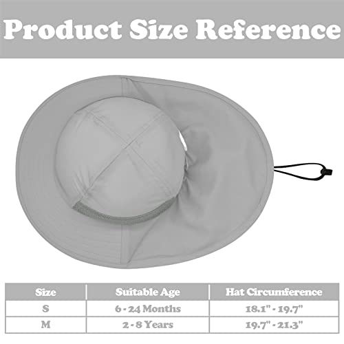 • SIZE INFORMATION: Two sizes. Size S is recommended for 6-24 months, head circumference can be adjusted from 18.1"=(46cm) to 19.7"=(50cm). Size M is recommended for 2-8 years, head circumference can be adjusted from 19.7"=(50cm) to 21.3"=(54cm). And the classic sun hats for kids can be selected in a variety of colors to suit children's different preferences and clothes.