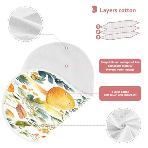 Watercolor Mushrooms Plant Burp Cloths Cotton Baby Washcloths,Large 22x11in Burping Cloth Absorbent and Soft for Newborn Baby Boys and Girls,4 Pack 5